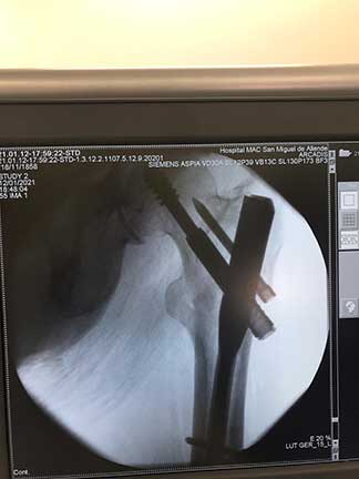 Radiografía de fractura de cadera consolidad, con clavo PFN